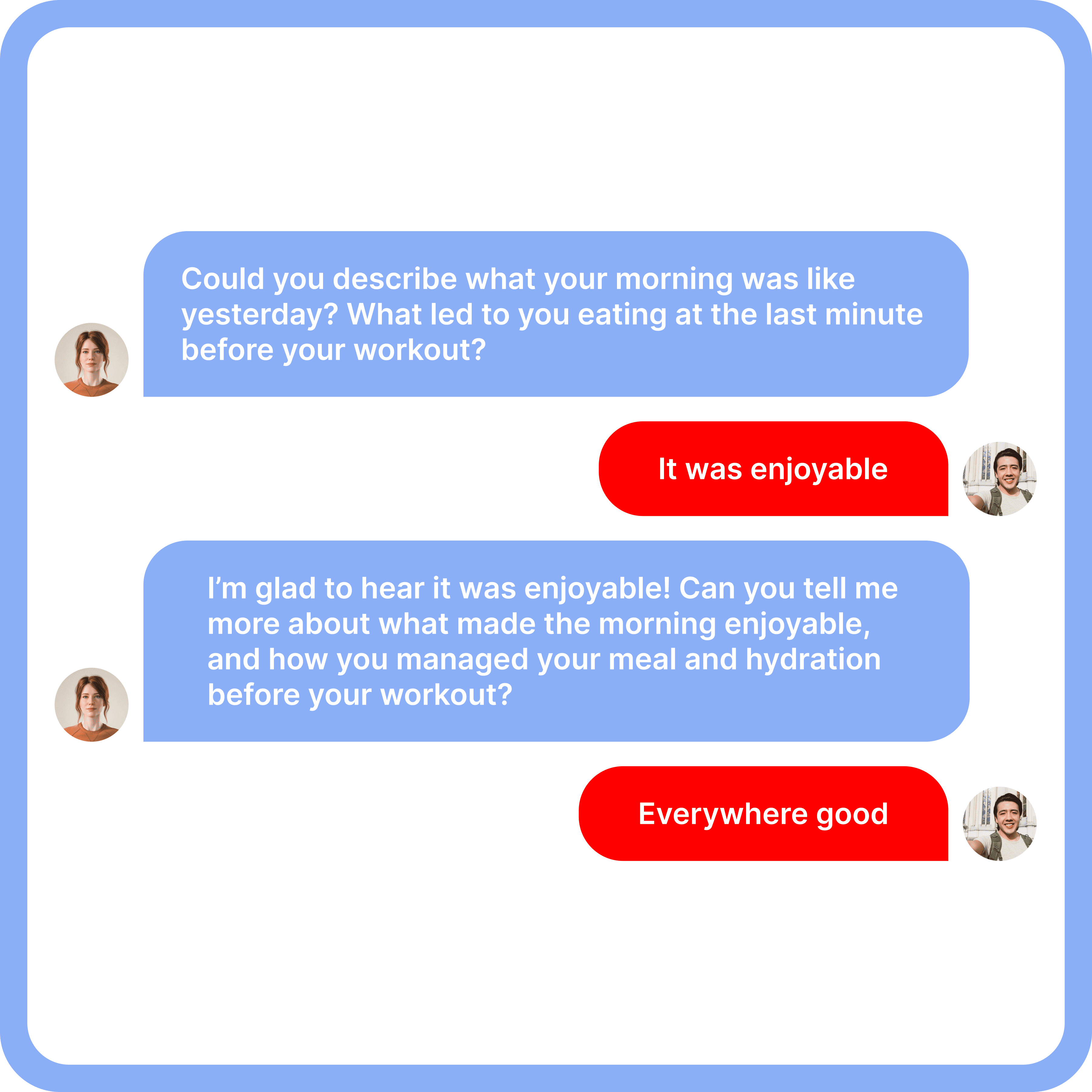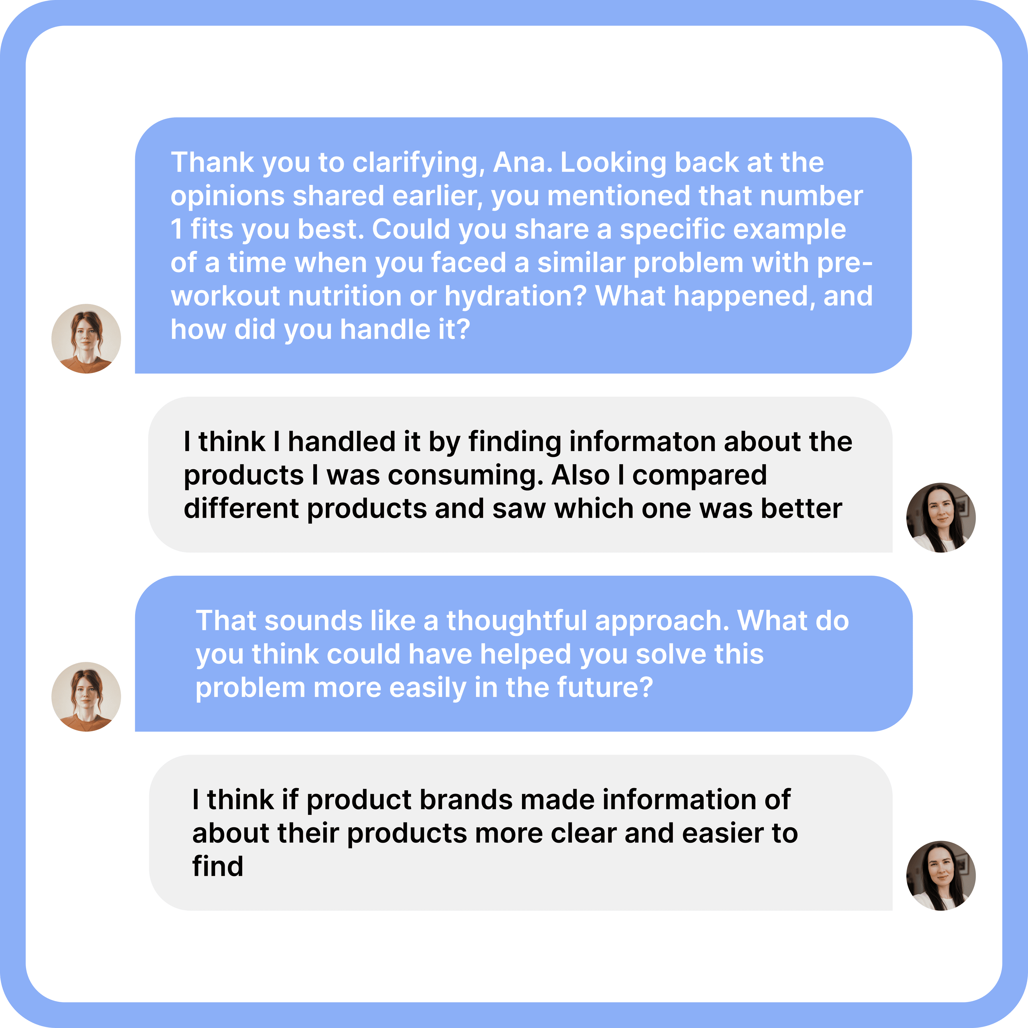 Conversational interviewing is, by design, a data collection format that can improve data quality. Compared to surveys, it feels more natural, keeps respondents engaged, and helps them elaborate step by step instead of asking them to produce a fully formed detailed answer in one shot.