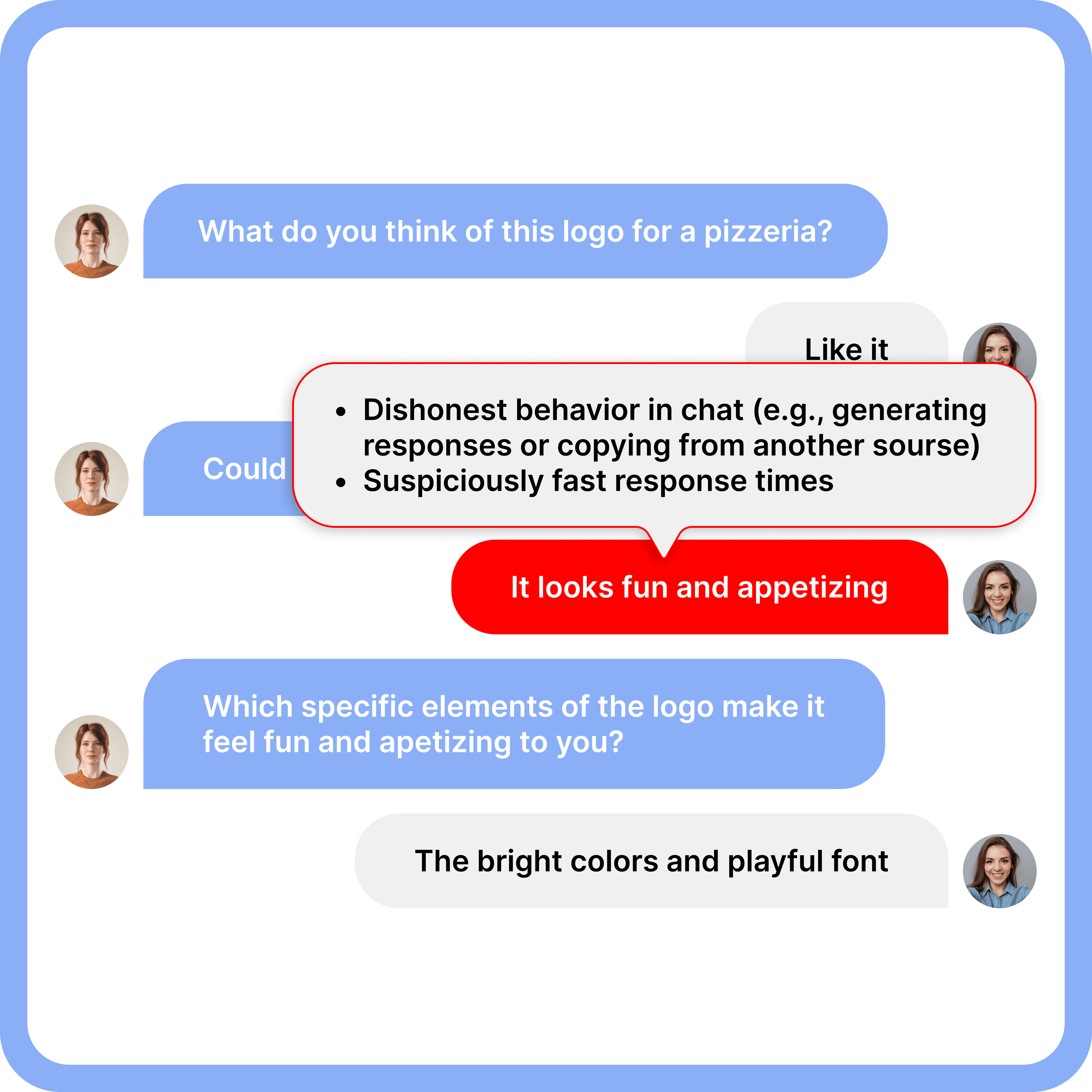 In AI-moderated research, this concern becomes even sharper: clients cannot physically see respondents in most cases, raising natural questions about bots, uncontrolled participant engagement, insufficient answer depth, and the reliability of automated moderation and research outcomes.