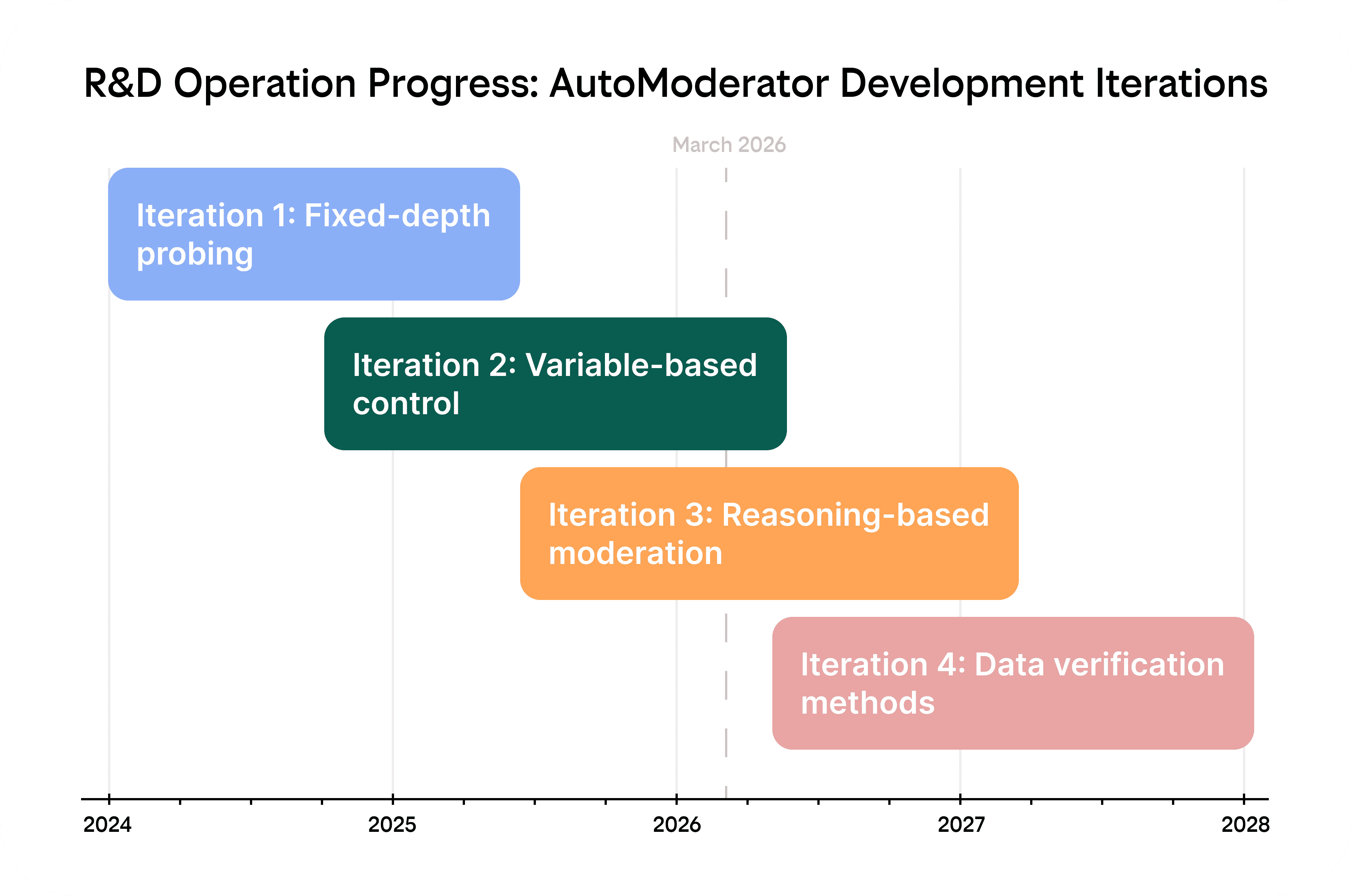 Continuous Updates & Testing. We treat quality as an ongoing discipline, with moderation logic improvements, platform testing, and validation continuously informed by real project delivery.